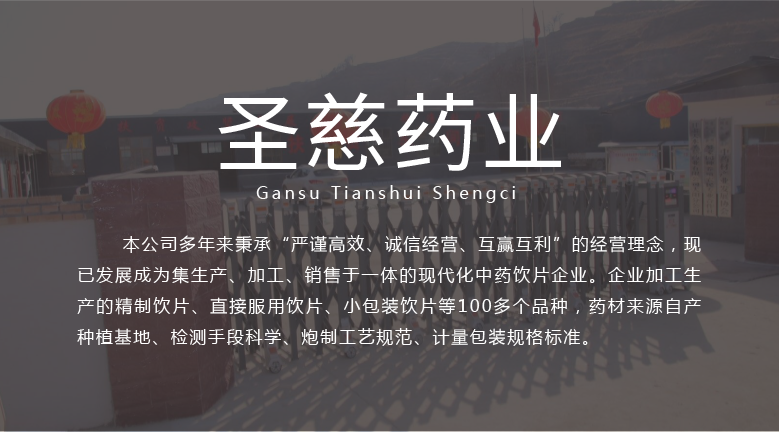 甘肅天水圣慈藥業(yè)有限公司成立于2016年11月8日,注冊資本500萬元,位于甘肅省天水市張川回族自治縣張川鎮中城南路,本公司多年秉承“嚴謹高效、誠信經營、互贏互利”的經營理念,現已發(fā)展成為集生產、加工、銷售于一體的現代化中藥飲片企業(yè)。企業(yè)加工生產的精制飲片、直接服用飲片、小包裝飲片等100多個品種,藥材來源自產種植基地、檢測手段科學、炮制工藝規(guī)范、計量包裝規(guī)格標準。
